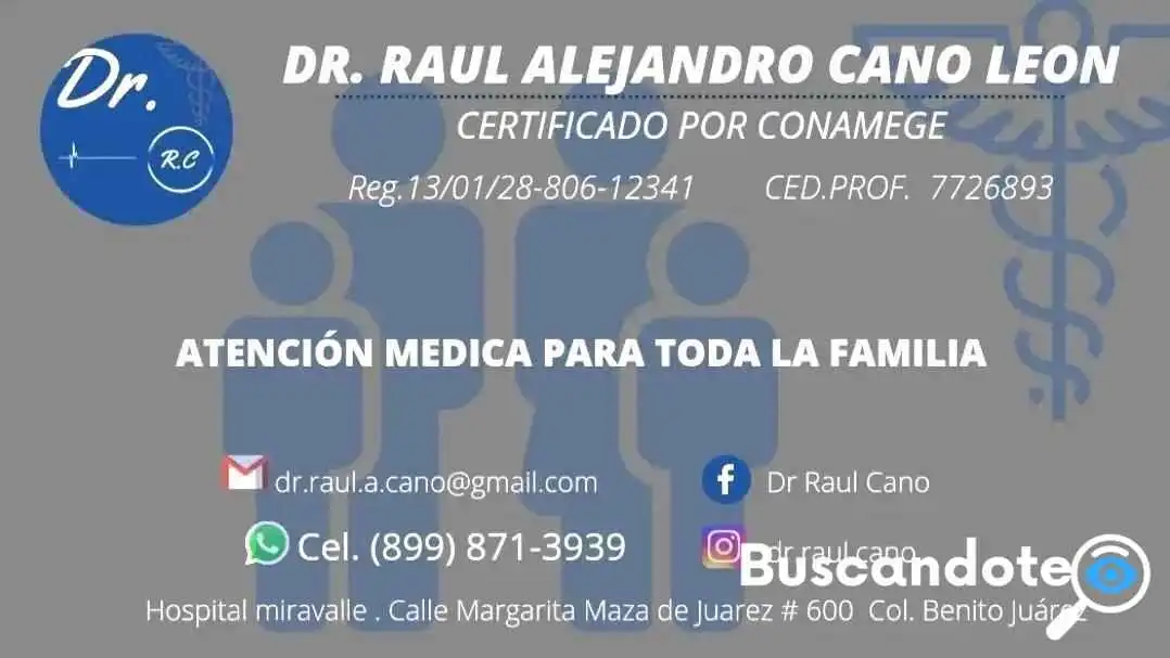 El Dr. Raúl Alejandro Cano se ha establecido como un referente en la atención médica en Reynosa, específicamente en Lic. Benito Juárez 88790. Sus pacientes destacan su profesionalismo y dedicación en cada consulta, lo que lo convierte en una opción confiable para quienes buscan atención de calidad.Experiencia y Formación